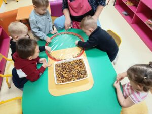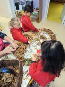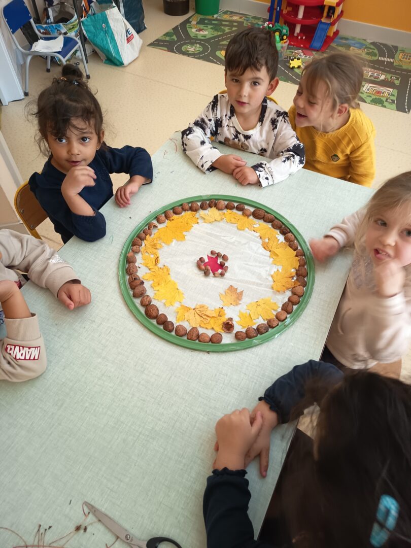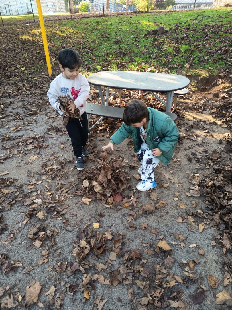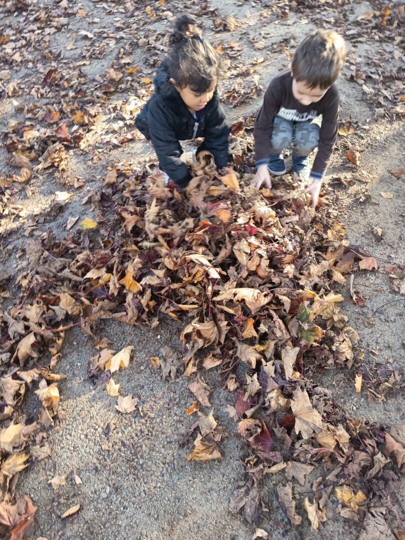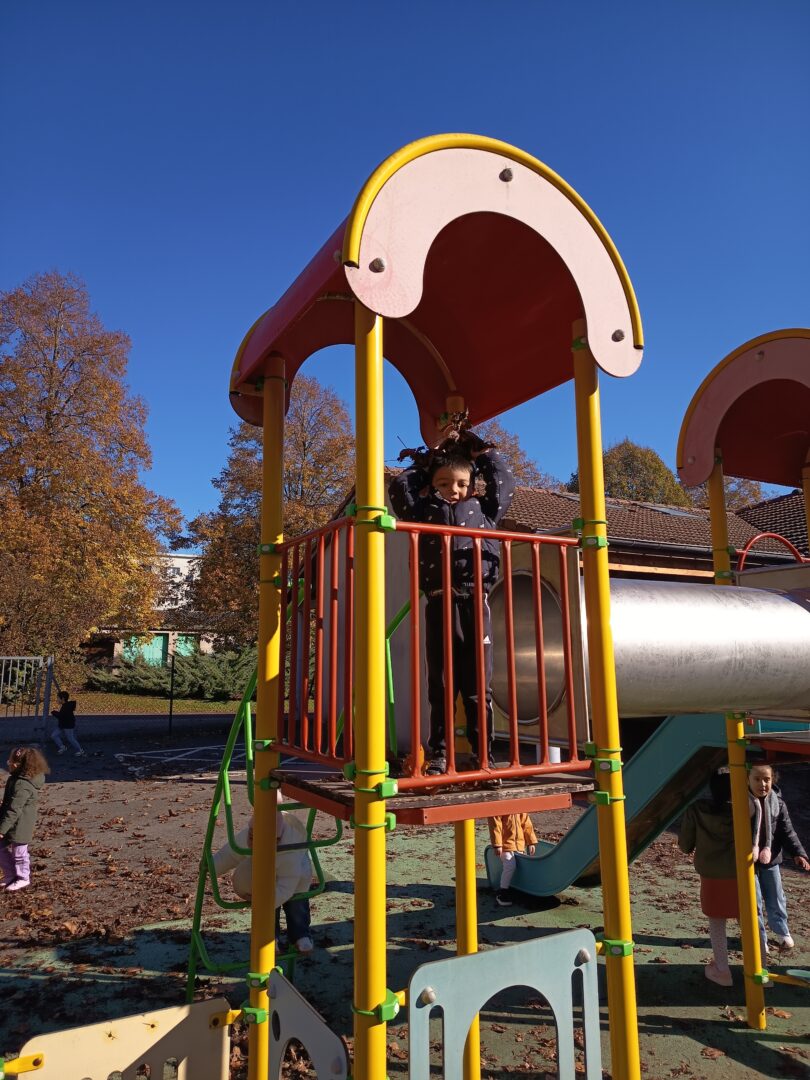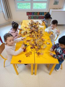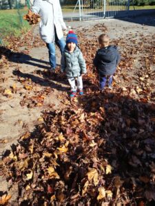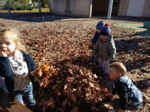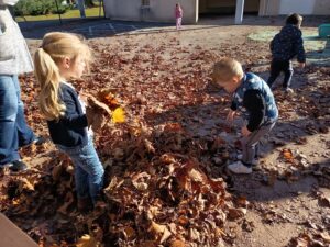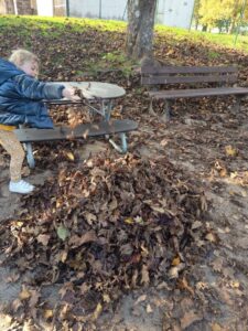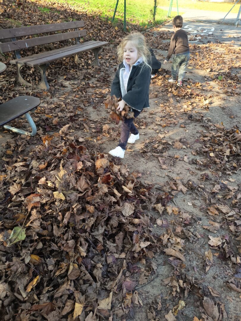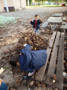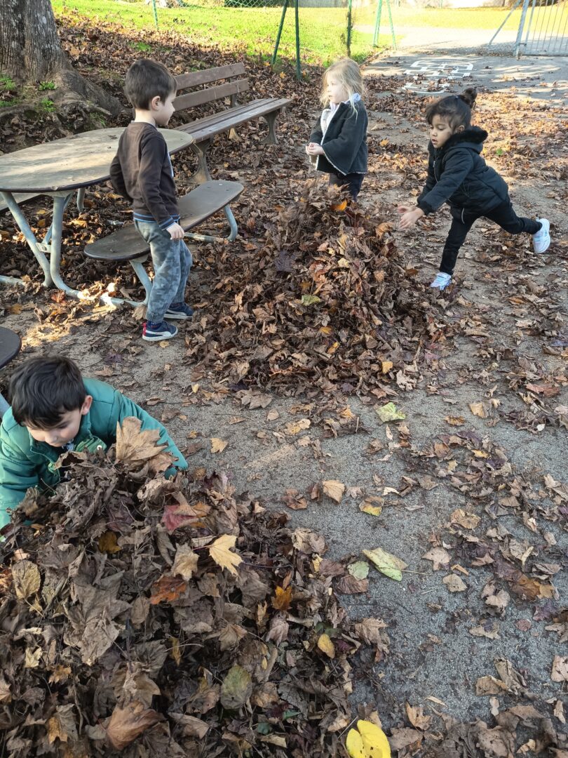 Et l’automne c’est la joie de s’amuser avec les feuilles mortes en récréation : construction de montagnes de feuilles, lancer les feuilles, faire des bouquets de feuilles…