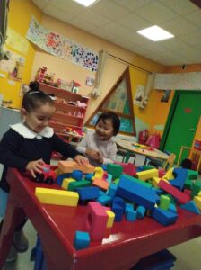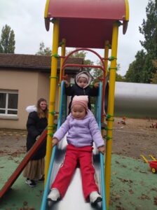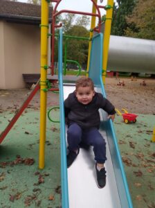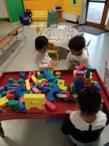 Les enfants commencent à communiquer dans leurs jeux : rires et échanges apparaissent.