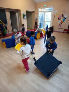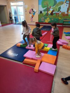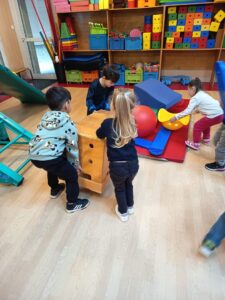 - Jeu des dĂ©mĂ©nageurs : transporter des Ă©lĂ©ments…mais ça se complique avec des tris selon la couleur/les objets, des objets imposants (apprendre Ă coopĂ©rer Ă plusieurs).
