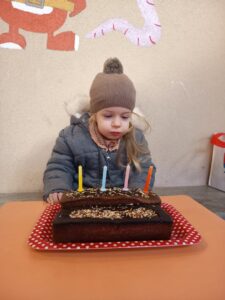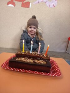 Pour l’occasion gâteaux au chocolat et bonbons…mais elle devra d’abord souffler ses 4 bougies!