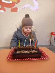 Pour l’occasion gâteaux au chocolat et bonbons…mais elle devra d’abord souffler ses 4 bougies!