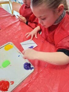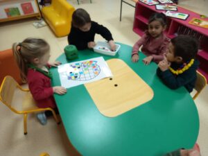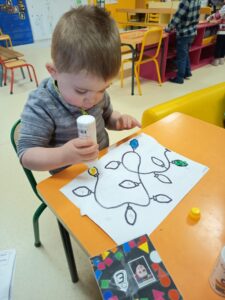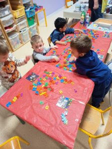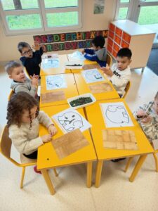 - les couleurs (PS – nommer les couleurs/trier selon la couleur) et les formes (MS- trier selon la forme/reproduire un assemblage de formes)