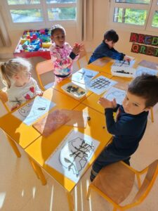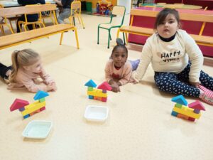 - les couleurs (PS – nommer les couleurs/trier selon la couleur) et les formes (MS- trier selon la forme/reproduire un assemblage de formes)