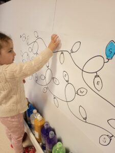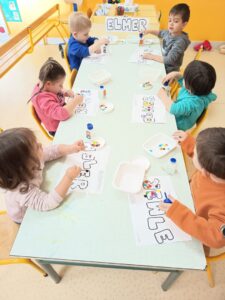 - Découvrir son initiale et les lettres d’ELMER (PS)/travail sur l’écriture de mot avec les lettres mobiles (MS)