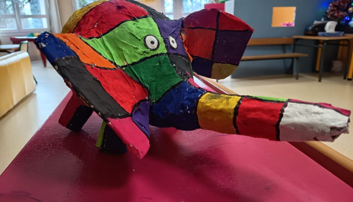 L’album qui nous a servi pour travailler cette période avait pour personnage principal ELMER, un éléphant particulier puisqu’il n’est pas gris mais bariolé!