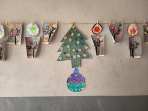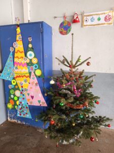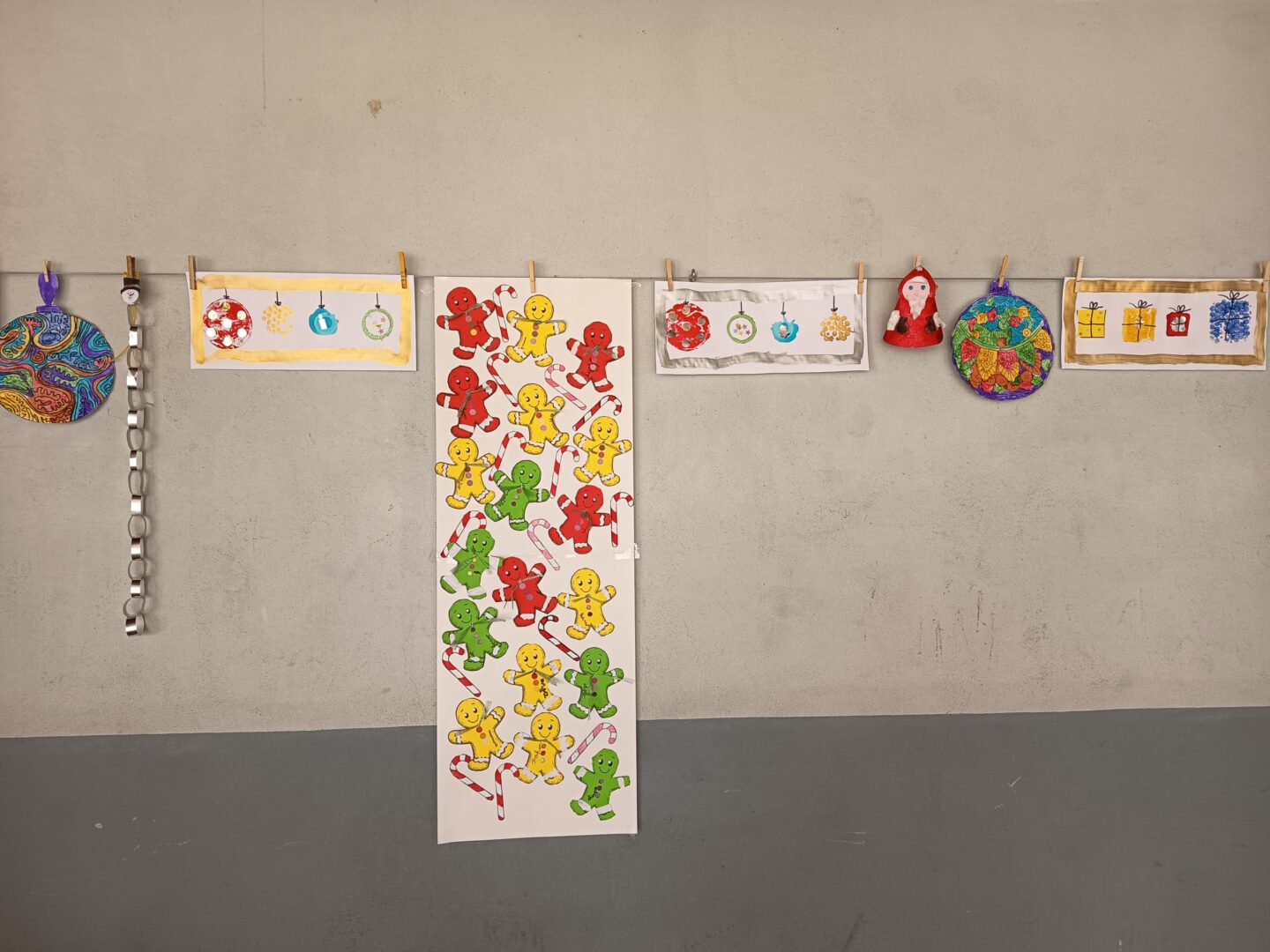 L’équipe enseignante a proposé aux parents de venir admirer les travaux des élèves de toute l’école à travers une exposition sur la thématique des fêtes de fin d’année et de profiter aussi d’un moment convivial avec la vente de chocolat chaud et de brioches.