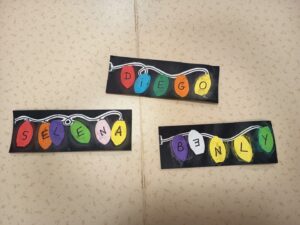 - Pour les PS, la guirlande électrique des initiales, pour les MS, la guirlande électrique de son prénom.