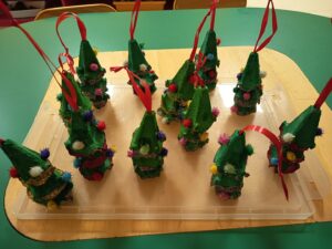 - Réalisation d’un petit sapin de Noël à accrocher dans le sapin ou ailleurs.