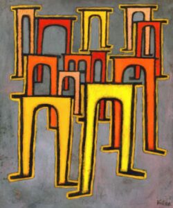 Après avoir observé des photos d’animaux qui sautent et des éléments/œuvres artistiques sur la thématique, on s’est amusé a réaliser des ponts en pâte à modeler, puis avec des bandes de papier.
