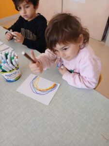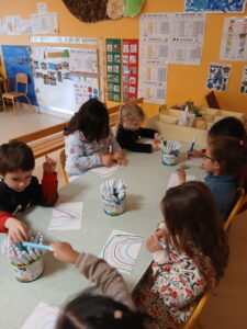 Et on a appris a dessiné des arcs-en-ciel et des fleurs!