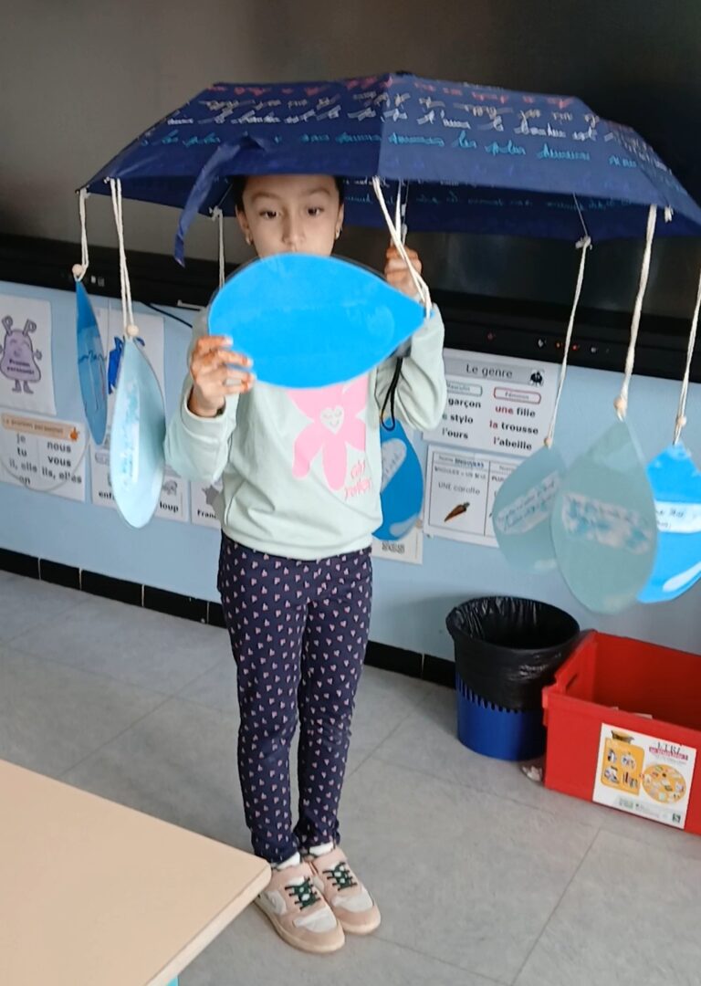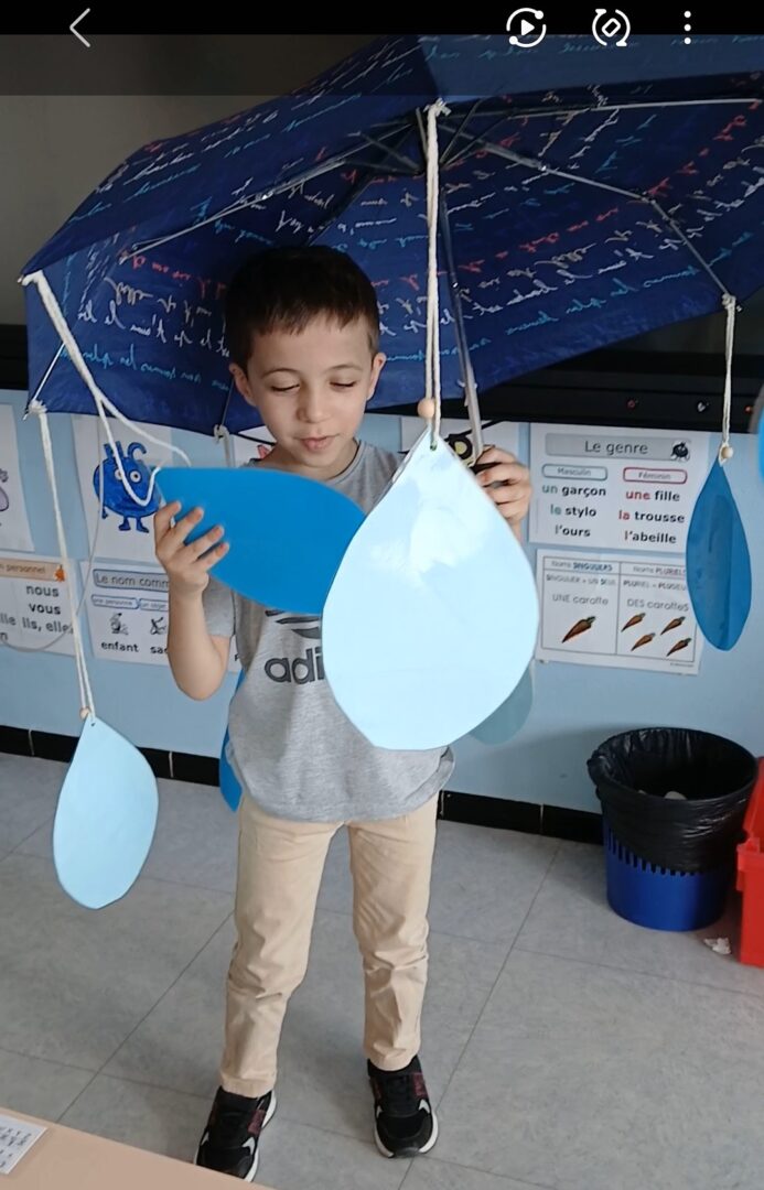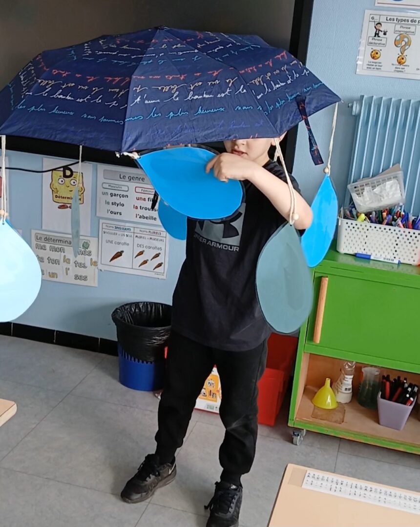 Notre parapluie poétique a été envoyé dans une autre classe. Nous recevrons à notre tour un cadeau poétique.